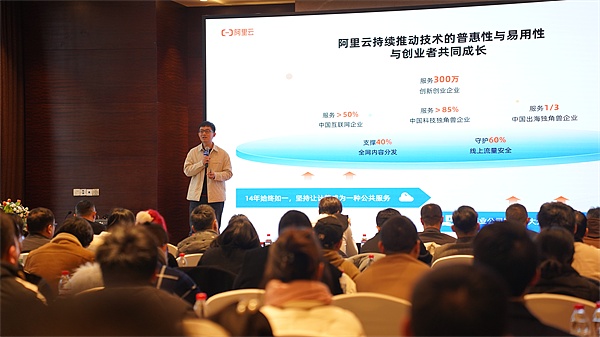 阿里云创业孵化事业部副总经理焦志良则深度解析了阿里云创业者计划。该计划旨在为初创企业提供从云端资源接入、产品开发到市场开拓的一揽子支持,包括最高可达100万人民币的上云抵扣金,助力创业企业实现零成本启动和快速成长。同时,阿里云还通过专家指导、培训支持和丰富的线上线下活动,促进创业者与阿里云团队、行业专家和其他领军企业之间的深度交流与合作,携手共进。