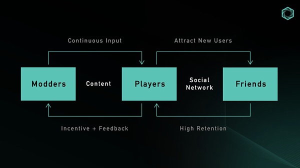 这种动态创造了一个具有重要网络效应的自我强化的正反馈循环。随着 modders 不断创造新的游戏和内容,玩家变得更加沉浸其中,新用户通过社交网络被吸引。随着玩家基数的扩大,mod 的激励和反馈系统鼓励更多的玩家成为 modders。modders 和玩家之间的共生关系,再加上直观的开发工具,推动了单个游戏中独特虚拟世界、体验和社区的兴起。
