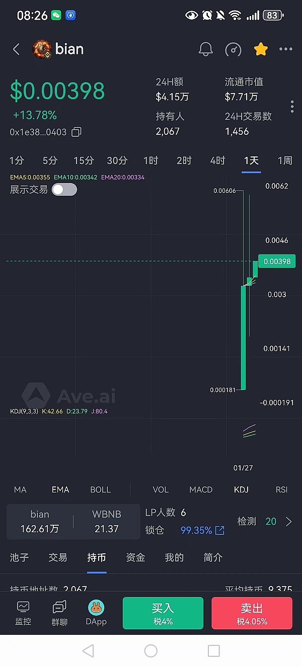 4. 流动性回流与锁定:买卖税的2%将回流至底池并自动锁定,增强市场稳定性。