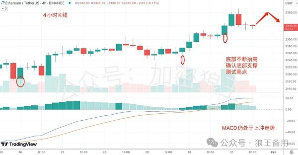 有多笔大额ETH链上异动,对ETH起到抛压预期作用。ETH沿5日线反弹,小时线底部不断抬高,确认多头支撑,上方2365.4美元是插针关键点,只有站稳2365.4美元,才能筑底走强, 进入多头补涨走势,接下来ETH在2365.4美元插针回落。