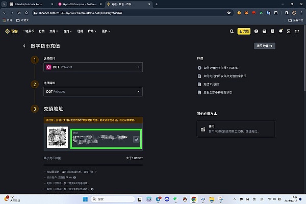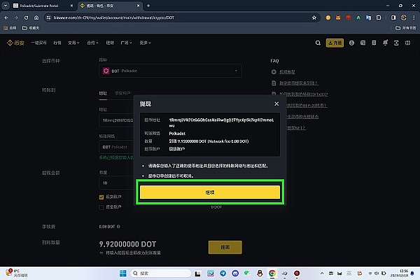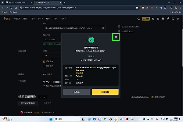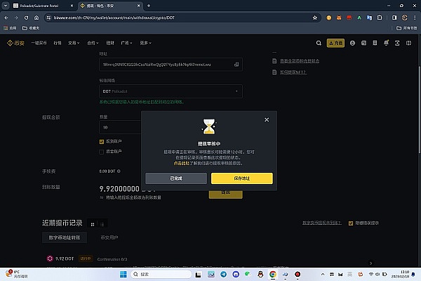 看到这个界面,说明 DOT 已从币安提现成功了!