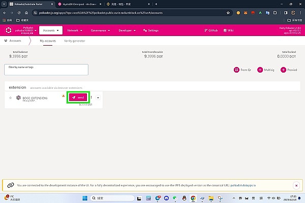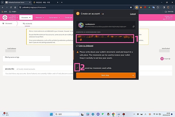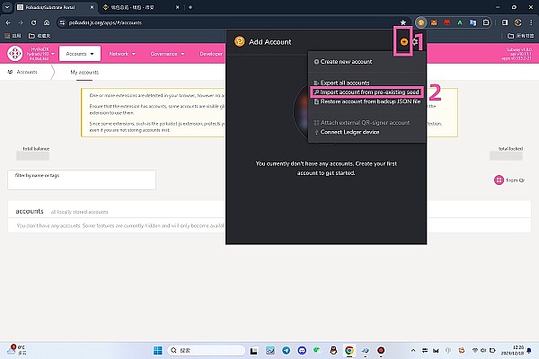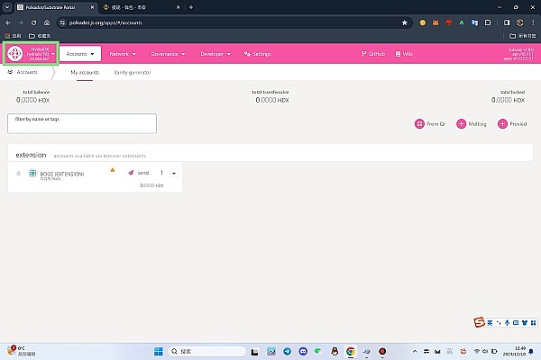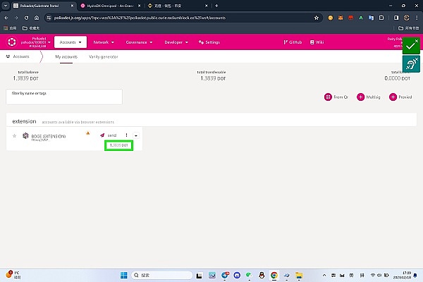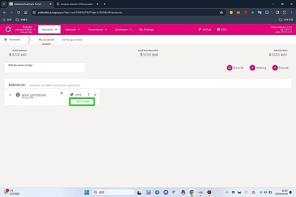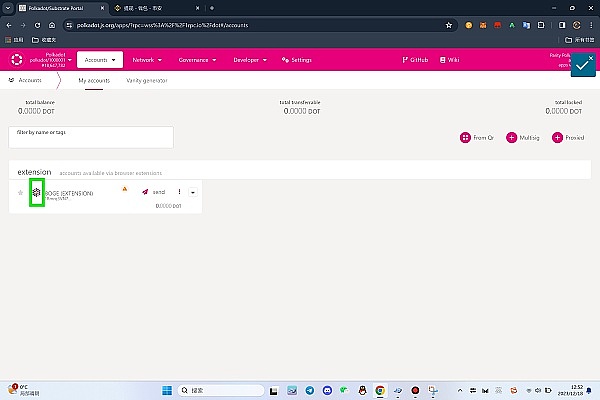 2、电脑安装有谷歌浏览器 Chrome,且安装好波卡官方钱包 polkadot.js 的扩展程序,并创建好波卡账户。