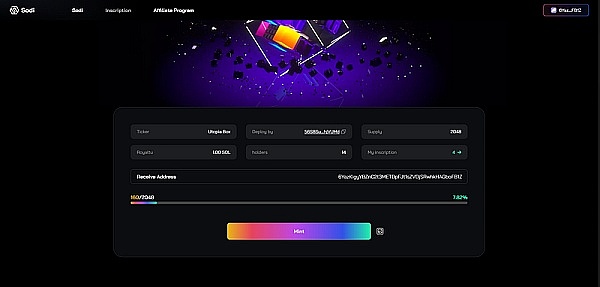 1月24日,Solana上首个版税铭文协议Sodi Protocol正式宣布上线,并同步开放Sodi铭文资产—乌托邦盒子的铸造。Sodi协议为铭文原创者提供了一个可访问、高效、一站式的平台来部署和铸造铭文资产,创新的版税策略不仅可以保护原创者的作品版权,也为原创者带来客观的版权收益,以激励更优质的原创内容创作。