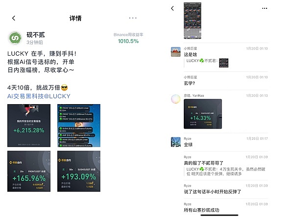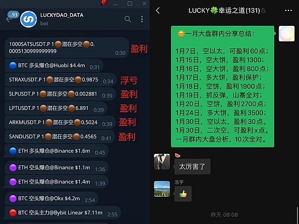LUCKY Dao的成功核心在于其多维度的AI交易技术。借助人工智能,LUCKY Dao的革命性产品颠覆交易市场前所未有的技术。4天内十倍的增长无疑见证了他们方法的高效性。Ai信号和专有数据分析的协同作用将LUCKY Dao置于市场前沿,其在预测市场趋势方面具有超过90%业内标准。最近1个月内,该社区创始人不贰生对大盘比特币和以太坊的主要方向分析分享,准确率尽达到了100%,十次全对,总计最高可累计近一万美金的波动点。