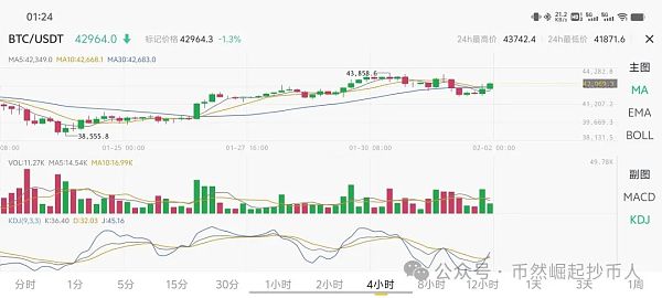 比特币btc42500-42700附近做多,