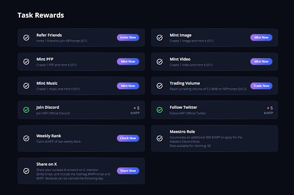 NFPrompt的一周签到和任务无疑是其突出的特点,可通过这些特点赚取1万美元的空投奖励。尽管NFPrompt的空投季节1已经结束,但用户表现出的高度兴趣和期待暗示着有很多人迫切期待下一个空投季节。