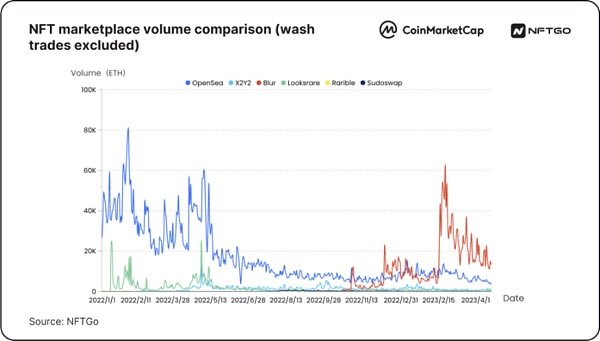 而 NFT 市场的格局也发生了巨变,Blur 从 2023 年初的与 Opensea 竞争激烈,到年底 Blur 几乎垄断了市场份额,而曾经独领风骚的 Opensea 在 2023 年 12 月份的周交易量仅占市场的 20%。尽管 Opensea 做出了产品和社区反馈,试图抵御 Blur 的冲击,但效果甚微。随着 Blur 的崛起,零版税的争论也逐渐消失,关于「创作者是否应该获得版税」的讨论已经渐行渐远。