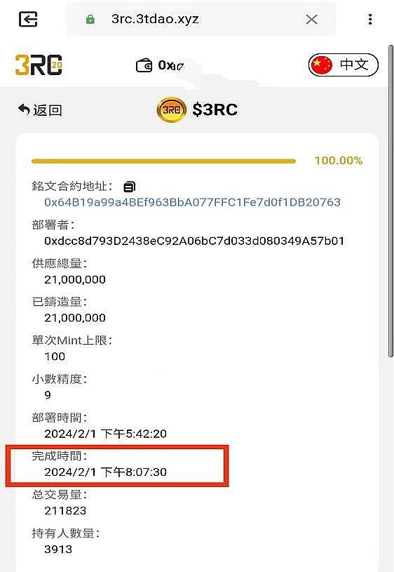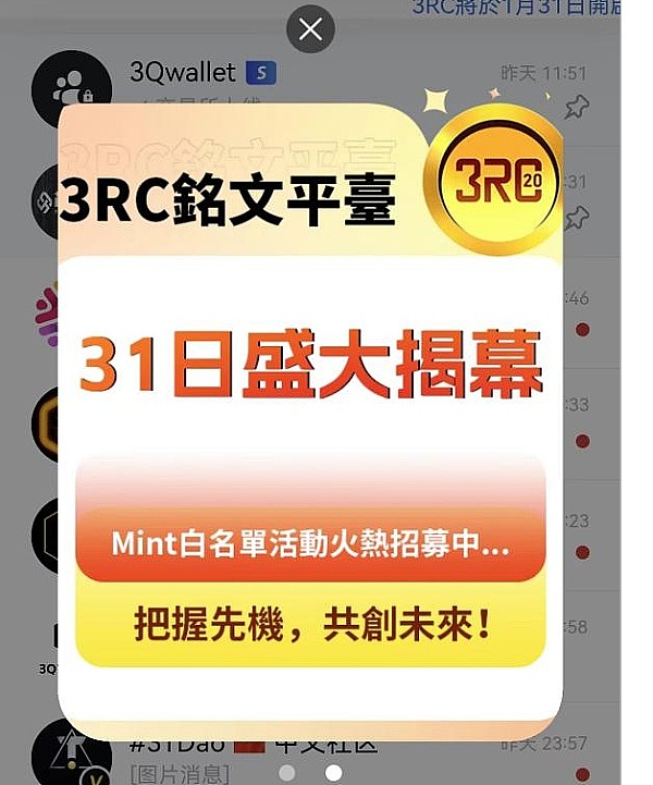 ●同时,3RC铭文交易平台币——3RC的公开铸造也备受瞩目。3RC的三大超级亮点:①铭文交易所分红权;②设计架构替换、跨域写入路径;③超流态质押体系,增加3RC铭文的流动性和可操作性,使其成为了市场上炙手可热的明星专案。总量2100万枚的3RC上线仅7分钟即售空,足见其受欢迎程度之高。