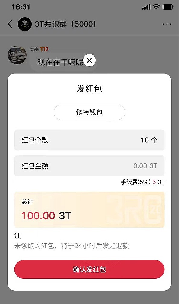 ●3T、USDT、主流数字货币和链上铭文,未来可期:目前1.0版本支持发3T红包,但未来2.0版本会支持USDT和铭文,3.0版本更是会支持其他数字资产,这一创新性的设计将为红包功能增添更多可能性和创意,让你在发红包的同时,也能感受到Web3社交的新奇与乐趣,还有更多惊喜等你来发现!