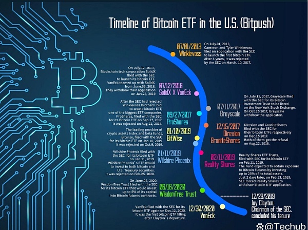 截至目前,已有13家发行商向SEC递交了比特币现货ETF的申请,这些公司包括灰度、贝莱德、富达、VanEck、ARK+21Shares和Bitwise等。他们打算在纳斯达克、芝加哥期权交易所BZX和纽约证券交易所Arca等交易所提供现货比特币ETF。在12月29日,多家公司提交了修正案,而12月21日,部分申请人还参加了与SEC举行的罕见联合电话会议。