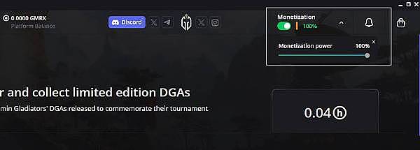 然后我们点 Monetization 即可贡献自己的算力获取代币。算力大小与自己计算机的显卡有关,一般建议配置性能不错的显卡进行尝试。