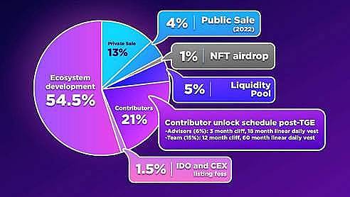 游戏过程中产生收入的10%将用于项目开发和贡献者奖励,80%直接奖励给GAIMIN用户玩家,7%用于奖励质押者和流动性提供者,3%将会被销毁并保持代币通缩属性,官方也扩展了不少应用场景,以增加市场对$GMRX的需求。