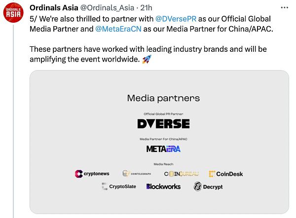 Meta Era 成为 Ordinals Asia 亚太首席媒体合作方
