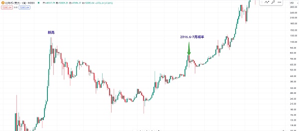 或者是2015年我们也可以观察一下 大约是在2016年的6到7月份减半之前也是没有去突破新高