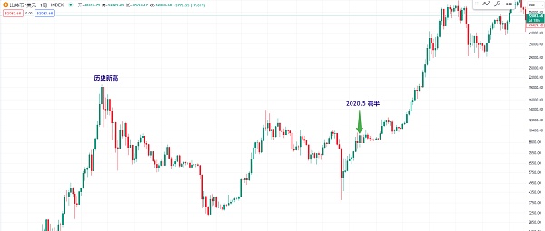不过我之前也是看过一些历史图表 在历史上比特币2020年的5月份产量减半 他是在减半之前没有去突破历史新高