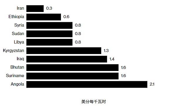2023 年 6 月全球最便宜的家庭电价,来源:Statista 研究部