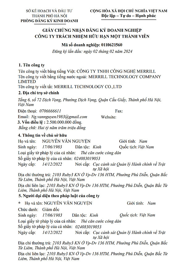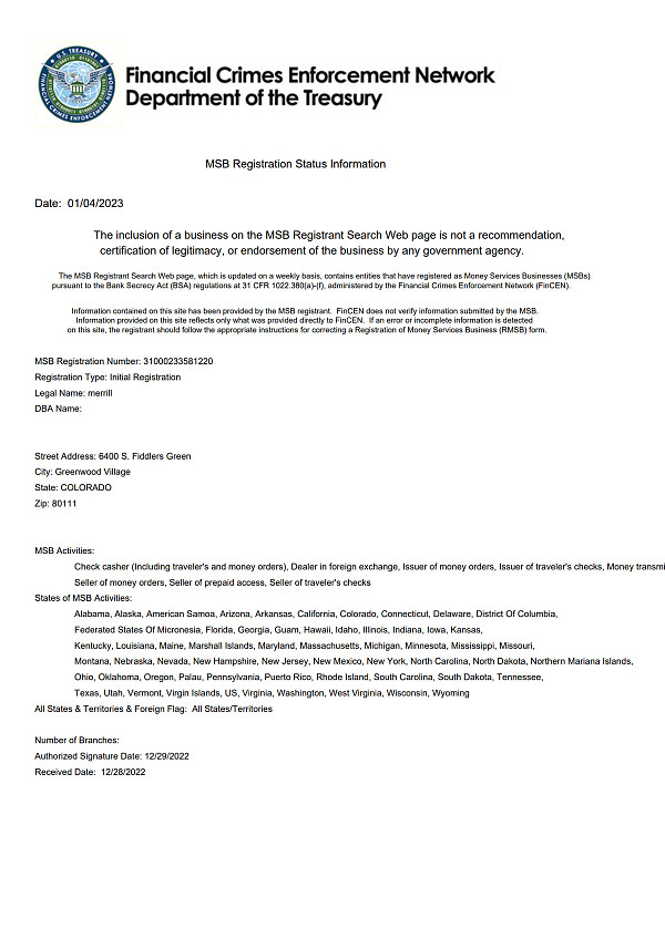 MERRILL TECHNOLOGY LTD., 是美国纽约一家知名科技公司,主要从事加密资产交易所平台和Web3生态建设,当前获得美国SEC监管备案牌照和MSB金融牌照,SEC(US Securities and Exchange Commission)备案号爲CIK 0002006035,MSB(Money Services Business)监管号爲31000233581220。目前以美国纽约和科州爲基础,主要业务重心聚焦在新加坡和越南等,当前全球会员覆盖10个国家和地区,包含越南、马来西亚、中国台湾、印尼、新加坡、印度、以色列、尼日利亚、泰国和菲律宾等。
