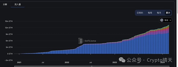 当前以太坊 Layer2 总锁仓量(TVL)为 262.1 亿美元,继续创历史新高,要知道,23年12月的时候,才160亿美金!涨了大几十个点,相关数据可以去L2BEAT 上查看。以太坊的流动性质押数据也在重新飞速增长,已经1362 万 ETH $39.177b(391.8亿美金)