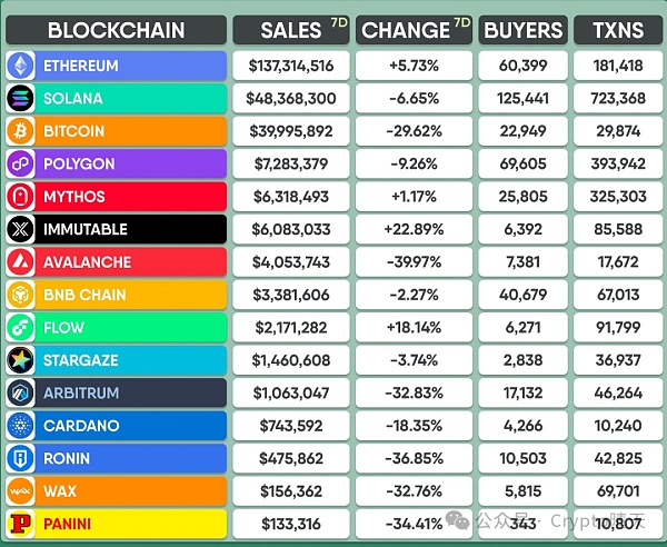 最近一段时间,以太的NFT交易数据一直在增加,最近7天交易达1.3亿美金以上位居第一,404的爆火,会更一步促进以太坊NFT整体的生态的活跃度,长期利好。
