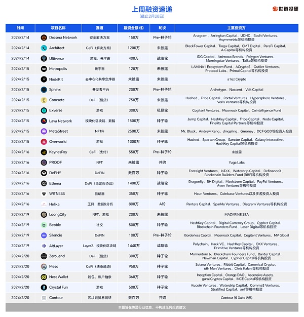 一些熟悉的参与机构,有a16z Crypto、Pantera Capital、Coinbase Ventures、Hashed、BlockTower Capital、IDG Capital、Polygon Ventures、Protocol Labs、Nascent、Volt Capital、Tribe Capital、Jump Capital、HashKey Capital、Galaxy Interactive、Dragonfly Capital、PayPal Ventures、Haun Ventures、Borderless Capital、Polychain Capital、Ribbit Capital等(排名不分先后)