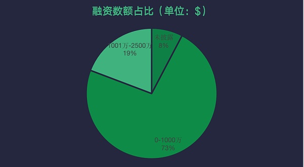 本周融资事件26起;据已披露信息不完全统计,总额超1.5亿美元;其中2起未披露;0-1000万美元19起;1001万美元-2500万美元5起;