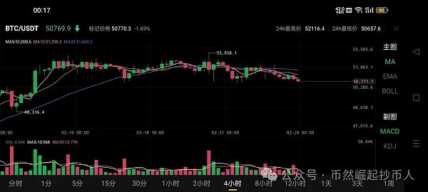 如图所示今日比特币行情分析,比特币4小时行情处于下轨附近震荡下行,附图所示处于是下轨道附近下行持续震荡回调运行,根据附图显示红色能量柱处于回调上行趋势,币价MACD以及BOLL持续震荡有继续持续回调下跌趋势,因为当前币价仍旧处于震有向下走势运行,所以目前短线来看操作会有一波下跌趋势,当前币价会在回调一波在操作高空一波,个人操作建议综合来看指标比特币短线币价高空为主,今日买入建议操作买入高空一波,个人建议,仅供参考。
