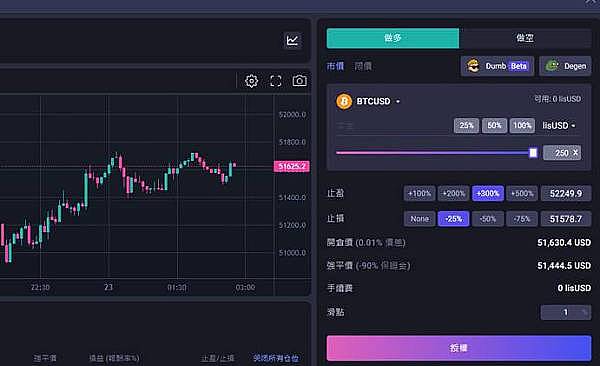 使用Metamask钱包登录,网络选择BNB Chain,然后选择自己想做的交易对,接着设置相应的开仓参数,其中包括本金、杠杆率、止盈止损线、滑点、模式(Dumb模式、Degen模式或者两者都不选的经典模式)。