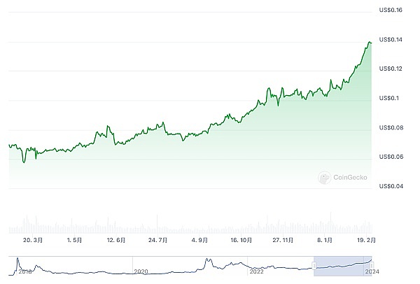 2月15日,波场创始人孙宇晨发推透露,TRON正式进军比特币二层生态,并公布其比特币二层解决方案及路线图。受该消息影响,TRX涨幅加剧,于21日达到近2年峰值0.14美元。