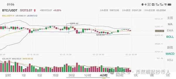 如图所示今日比特币行情分析,比特币4小时行情处于中轨附近震荡下行,附图所示处于是下轨道附近下行持续震荡回调运行,根据附图显示绿色能量柱处于回调下行趋势,币价MACD以及BOLL持续震荡有继续持续回调下跌趋势,因为当前币价仍旧处于震有向下走势运行,所以目前短线来看操作会有一波下跌趋势,当前币价会在回调一波在操作高空一波,个人操作建议综合来看指标比特币短线币价高空为主,今日买入建议操作买入高空一波,个人建议,仅供参考。