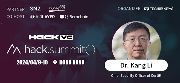 CertiK CSO Dr. Kang Li 确认出席Hack .Summit() 2024区块链开发者盛会