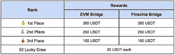 将 USDT 和 FSNA 桥接到 KLAY 金额最多的用户各获得350USDT奖励