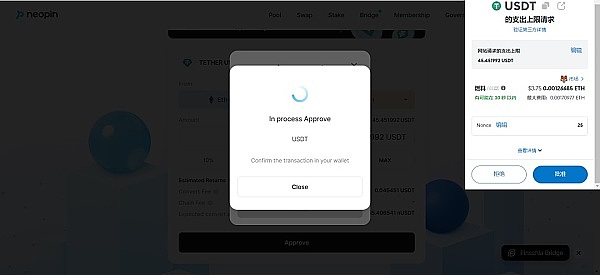 然后在钱包中点击批准,等待批准成功。