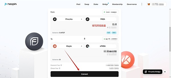 操作:通过 NEOPIN EVM 和 Finschia Bridge 将 USDT 和/或 FNSA 连接到 Klaytn 网络,这其中包含两种跨链操作: