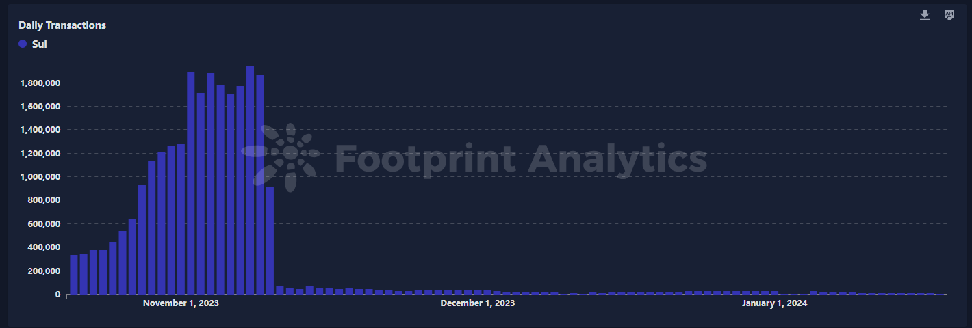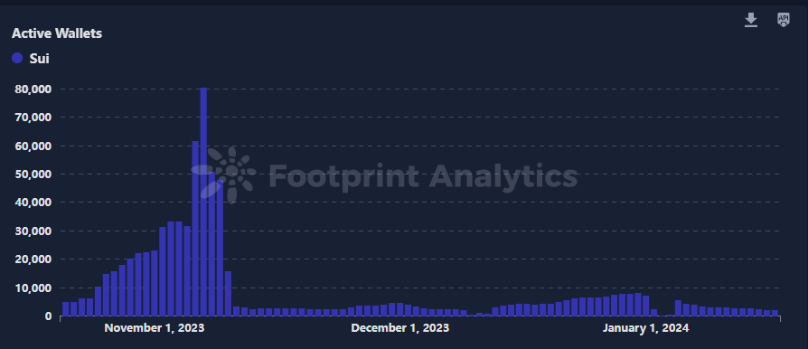 11 月 7 日,我们观察到活跃钱包大幅增加,超过 80,000 个大关,展现了其客户获取潜力。然而,这几个月的活跃钱包数量徘徊在千级区间。