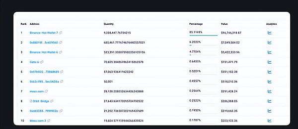 在总供应量中,早期股权投资人持有的流通量不大。在BSC可追踪地址中,币安地址占比高达90%,构成了潜在抛压的主要来源。