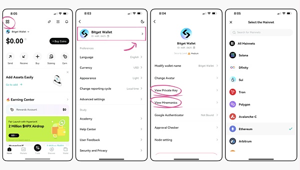 要获取您 Bitget 钱包的私钥或助记词,只需按照以下步骤进行: