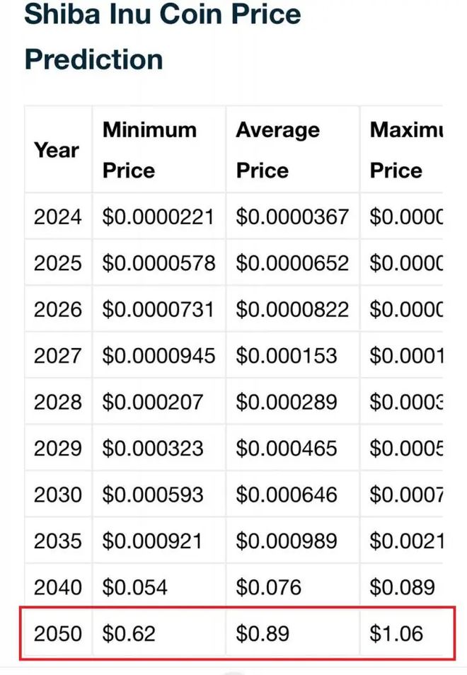 领先的链上指标和价格预测公司Telegaon为 Shiba Inu 描绘了一幅美好的图景。根据价格预测,SHIB 可能会在 2050 年某个时候达到 1 美元大关。考虑到其目前持有的 549 万亿流通供应量,这是一个大胆的预测。