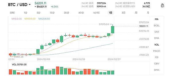 比特币突破5.7万美元,开启狂暴模式,后续难以想象!