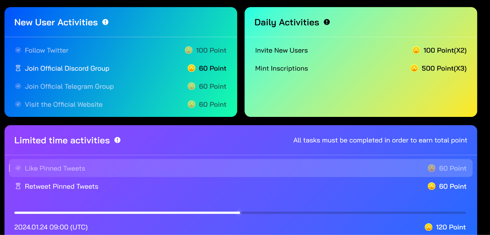 为了鼓励用户持续参与,Sodi积分系统还包括了一系列日常活动。用户可以通过在Sodi平台上进行日常交易、复刻铭文、或邀请新用户等行为累积积分。这种机制不仅增加了用户每天参与Sodi平台的动力,也促进了生态系统内内容的丰富和分享。