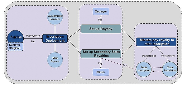 二次销售特许权使用费: 指铭文在每次交易过程中,必须向铸造者支付的一定比例费用。这一机制鼓励了铭文的持续流通,同时确保铸造者从铭文的每一次流通中获益。