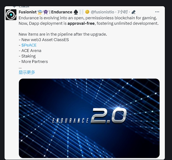最近Endurance升级的预期好消息也已经在推特上发布了: