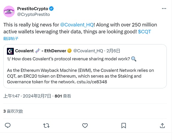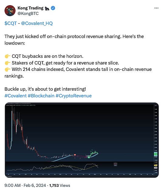 Covalent Network(CQT)在 Web3 结构化数据以及长期数据可用性方面保持着领导地位,其支持范围扩展到了人工智能等不断增长的新兴领域,这些领域对结构化数据的需求也正在不断增加。一些关键意见领袖(KOLs)已经在社交媒体上表达了对 Covalent Network(CQT)的肯定及支持,让我们深入了解一下: