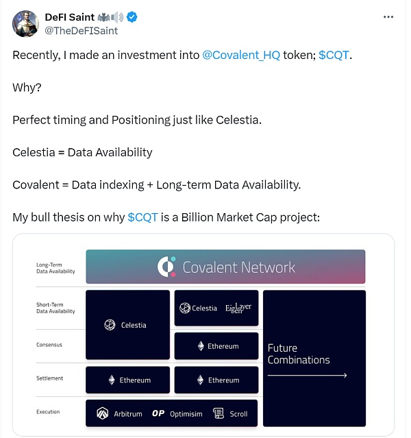Covalent Network的长期数据可用性,获得了众多加密 KOL的肯定及支持