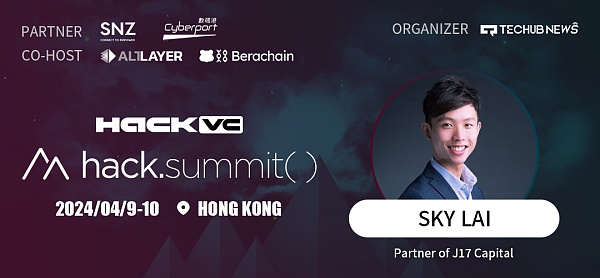 J17资本合伙人SKY LAI确认出席由 Hack VC 主办,并由 AltLayer 和 Berachain 联合主办,与 SNZ 和数码港合作,由 Techub News 承办的Hack.Summit() 2024区块链开发者盛会。