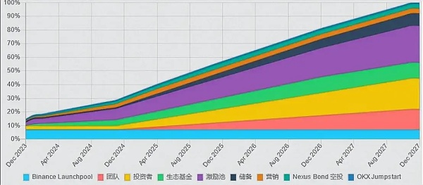 ACE主要用于Fusionist、ACE Arenas以及Endurance之上,代币首次发行为147万个,占总量的1%,有一定的解锁期,从下图可以看到初始解锁量相对较少,市场抛压并不大。