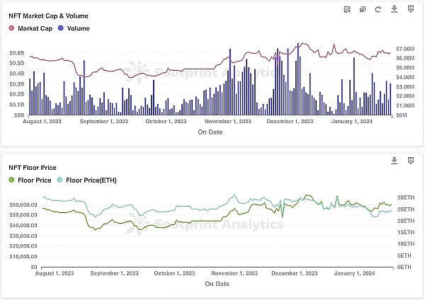 根据 Footprint Analytics 提供的 NFT 数据,在过去六个月中,Bored Ape Yacht Club NFT 系列的地板价和整体市值出现了一定波动。
