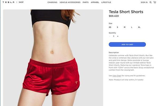 DoNews 7月6日消息(记者 刘文轩)特斯拉 CEO埃隆·马斯克(Elon Musk)承诺的”做空短裤“(Tesla Shot Shorts)在特斯拉网站上架,每条售价69.420美元。