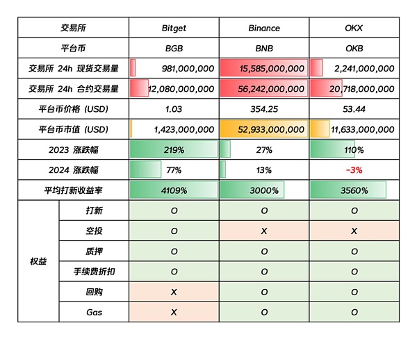 因此,我认为一部分人已经开始意识到 Bitget 的平台币 BGB 有巨大的上升空间,并且被严重低估。当然,我们也认识到自身的不足,需要加强 BGB 的赋能,缩小与 BNB 和 OKB 的差距,包括增加新币挖矿和打新的频率等措施。