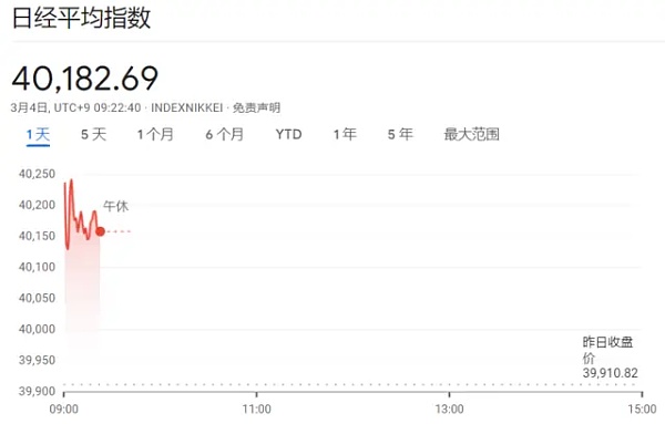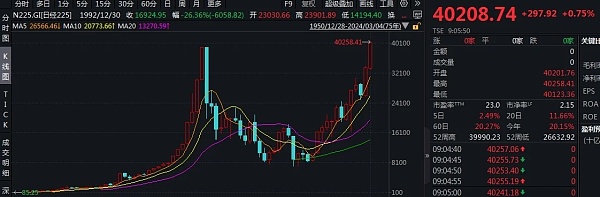 美港通证券美股市场交易日经225指数开盘突破40000点, 历史首次
