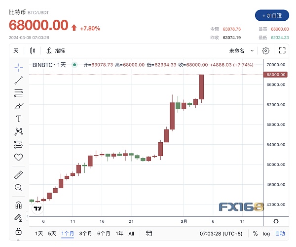 BTC走势“令人震惊” 碾压15种顶级货币剑指6.9万美元